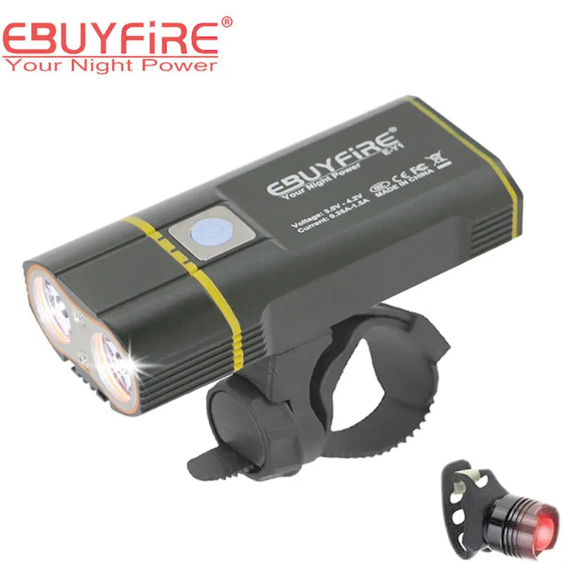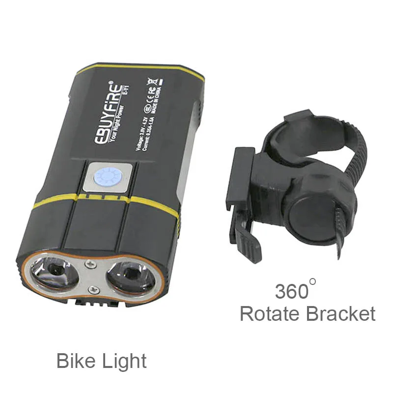 Bike Bicycle Light 2x XML-L2 LED Cycling Lights USB Rechargeable 6000mAh bicicleta Wheel Bike Front Light A: Package Contents: 1x Bicycle Light 2* XML-L2 Front Light 1x USB data cable 1x Holder (Note: No 01 Rear tail lights) -------------------------------------------------------------------------------------------------- --------------------------------------------------------------------------------------------------- SET B: 1x 01 Rear tail lights 1x Bicycle Light 2*XML-L2 Front Light 1x USB data cable 1x Holder SET C: 1x BX3 Bicycle Light 3*XML-L2 Front Light 1x USB data cable 1x Holder ------------- SET D: 1x 01 Rear tail lights 1x BX3Bicycle Light 3*XML-L2 Front Light 1x USB data cable 1x Holder ------------------------------------------------ Features: Aluminum alloy material, strong and water resistant. The strap can help to install and remove easily. Very useful for most of bikes. Specifications: Name: E1 Material: Aluminum alloy Color: black Lamp beads: 2 * CREE XML-L2 Mode: HI > MID > LOW > Flash > SOS Voltage: 3.0V - 4.2V Current:LOW-0.35A MID-0.7A HI-1.5A Battery: 2 X 18650 Rechargeable Battery Capacity: 6000mAh (Include) size: 100mm x 45mm x 25mm Bracket:360 Degree rotation For Bicycle weight:250g SET B : ---------------------------